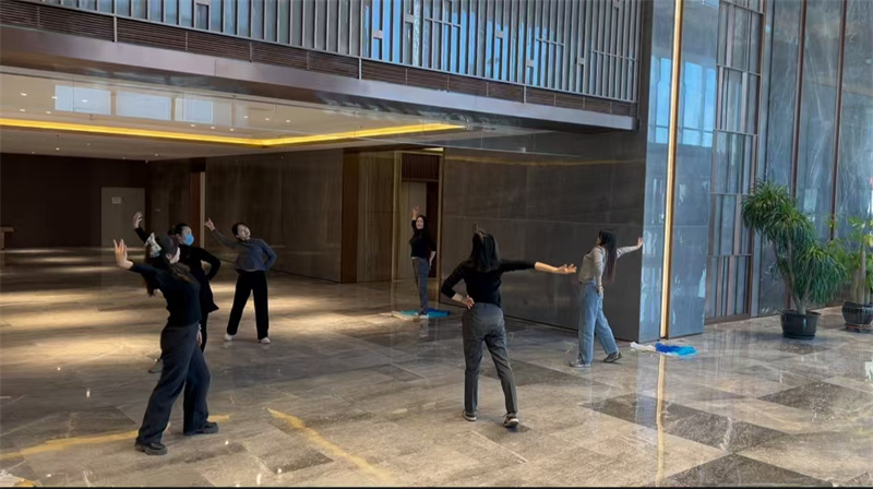 此次舞蹈排練,公司各部門員工踴躍參與,涵蓋不同崗位,大家齊聚排練場地。排練現(xiàn)場,專業(yè)舞蹈老師耐心指導,從基本舞步到復雜隊形變換,細致講解每個動作要點。員工們認真學習,反復練習,力求動作精準到位。盡管不少人毫無舞蹈基礎,但她們不怕困難,相互鼓勵、相互幫助,展現(xiàn)出團隊協(xié)作的強大力量。