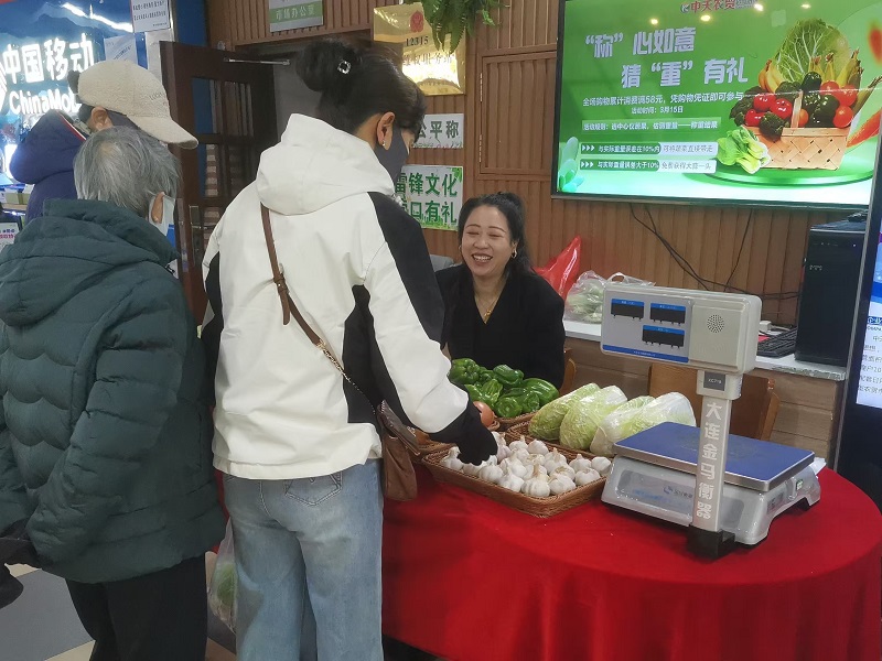 活動(dòng)規(guī)則簡(jiǎn)單有趣,顧客只需全場(chǎng)購(gòu)物累計(jì)消費(fèi)滿58元,即可憑消費(fèi)憑證參與活動(dòng),隨意選擇一種蔬果并估測(cè)其重量,如果與實(shí)際重量誤差在10%以內(nèi),即可免費(fèi)獲得;如果誤差超出,則可得到鼓勵(lì)獎(jiǎng)——大蒜一頭。這種“贏也贏,輸也贏”的玩法,讓顧客們樂(lè)此不疲。