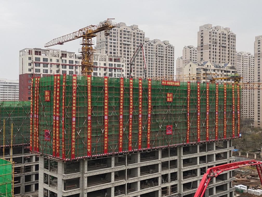 萬丈高樓平地起,眾志成城為建設,經(jīng)過各參建方管理團隊的科學規(guī)劃,精細組織,務實管理,4月17日,錦州中天·學府壹號項目迎來了第一個主體樓六號樓封頂,完成了第一棟主樓封頂?shù)墓?jié)點目標,為后期工程建設奠定了堅實的基礎。