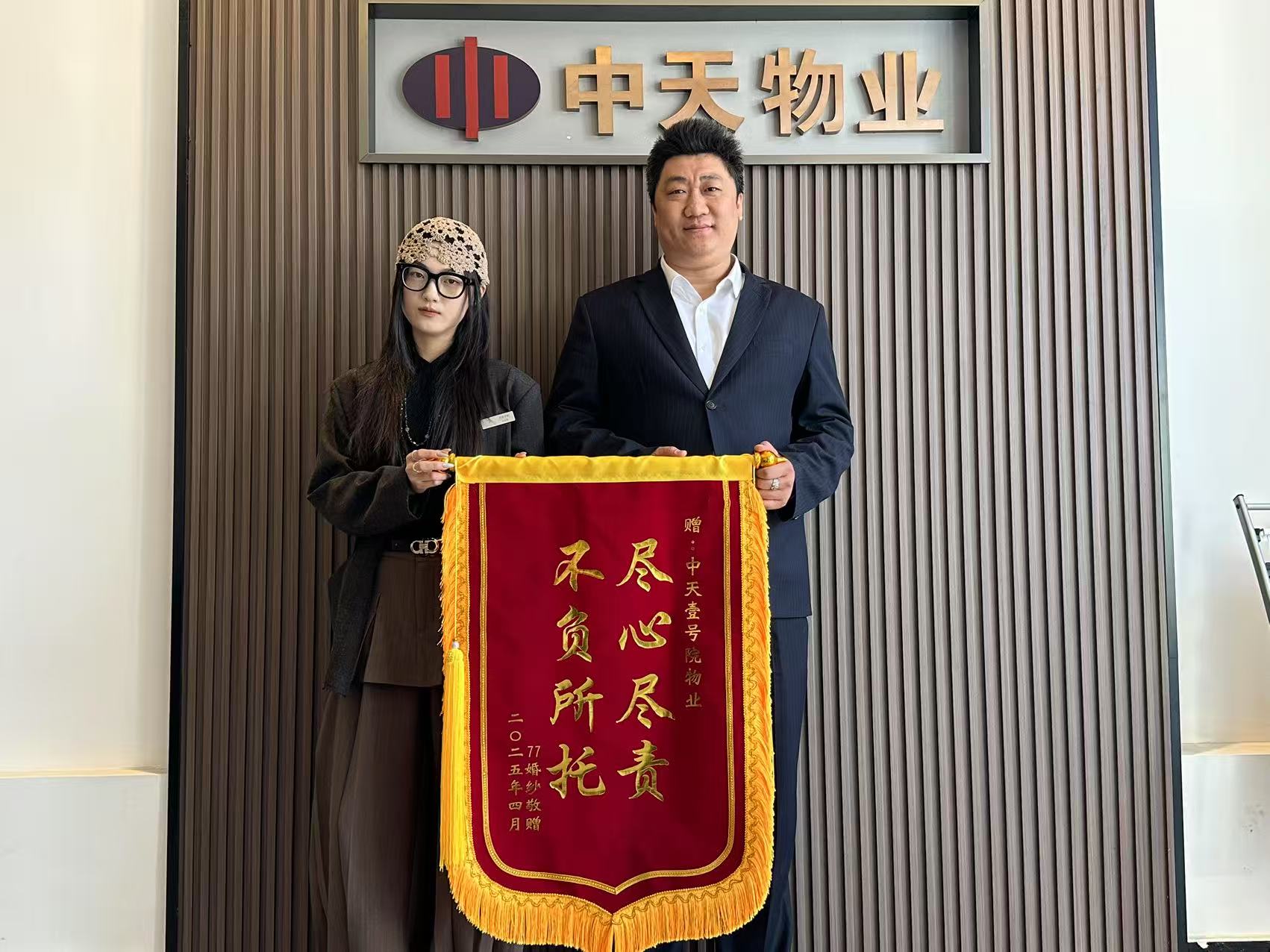 小小的鼓勵,大大的鞭策。一面錦旗,是業(yè)主對物業(yè)服務(wù)的認(rèn)可,更是鞭策我們前行的動力。今后中天物業(yè)將帶著這份溫暖,繼續(xù)做您美好生活的“守護(hù)者”。讓服務(wù)有溫度,讓幸福觸手可及。