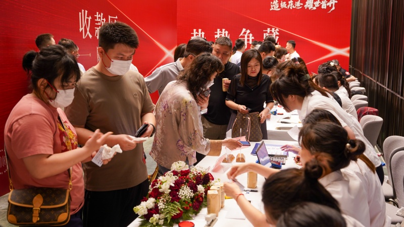 簽到完成后,客戶們有序步入等候區(qū)內(nèi),精致的茶歇、舒緩的背景音樂、柔和的燈光營造出典雅氛圍,盡管現(xiàn)場人頭攢動(dòng),但在工作人員的精心安排下,一切都井然有序,讓客戶在等待的過程中也感受到了舒適與愜意。