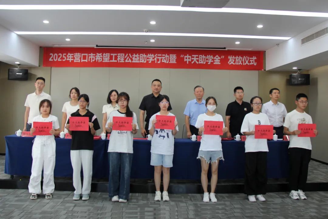 8月18日下午,2025年?duì)I口市希望工程公益助學(xué)行動(dòng)暨“中天助學(xué)金”發(fā)放儀式在中天集團(tuán)總部會(huì)議室舉行。營(yíng)口市團(tuán)市委書(shū)記劉慶男,中天企業(yè)集團(tuán)董事長(zhǎng)于寶權(quán)、總裁于洪波,營(yíng)口市團(tuán)市委副書(shū)記李瀚霖、曹午陽(yáng),營(yíng)口市教育局副局長(zhǎng)關(guān)雪嬌,營(yíng)口市慈善總會(huì)副會(huì)長(zhǎng)黃渤以及獲得資助的35名學(xué)生,出席了本次發(fā)放儀式。