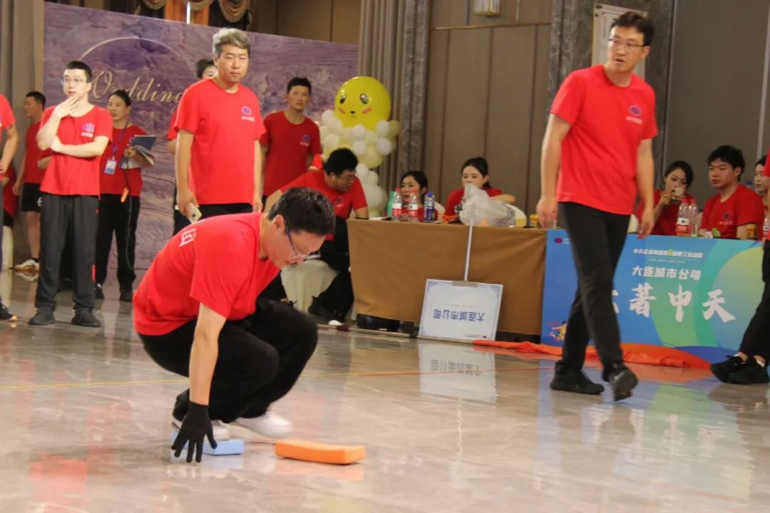 “摸石過(guò)河”每隊(duì)4人,每個(gè)隊(duì)員三塊瑜伽磚,兩腳站在兩塊磚上,通過(guò)挪動(dòng)腳下的磚前進(jìn),直到終點(diǎn),雖然要追求速度,但是也要穩(wěn)當(dāng)前行,避免中途腳落地犯規(guī)。最終大連城市公司以絕對(duì)優(yōu)勢(shì)取得第一名,遼陽(yáng)城市公司、營(yíng)口城市公司分獲二、三名。
