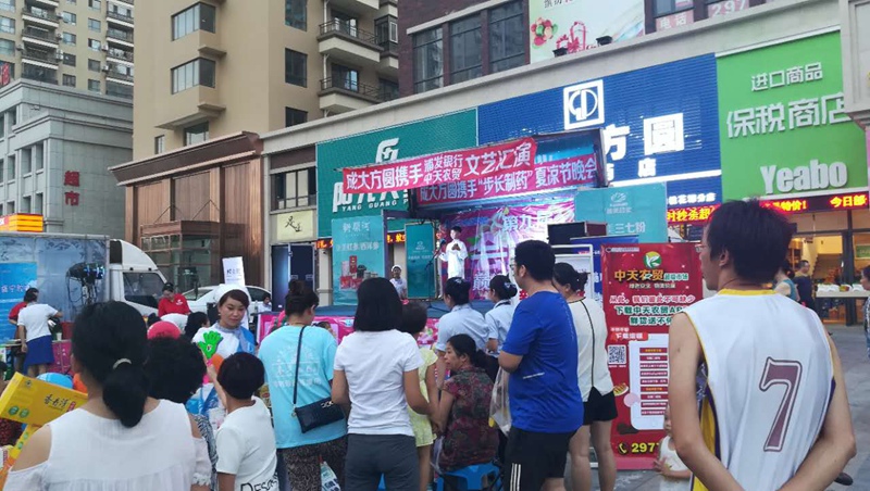 晚會全程都在播放中天農(nóng)貿(mào)市場新一輪的活動內(nèi)容——中天夜市、快樂星期五、中天惠家日讓顧客在觀看演出的同時也充分了解農(nóng)貿(mào)市場新奇不斷的優(yōu)惠活動。主持人在演出中也不斷介紹中天農(nóng)貿(mào)市場簡介并與臺下觀眾互動,只要回答正確關(guān)于中天農(nóng)貿(mào)市場的相關(guān)問題即有小禮物贈送,夏涼扇、環(huán)保袋、休閑撲克都成為觀眾爭先搶答問題的動力源泉。同時在市場正門,中天農(nóng)貿(mào)APP的吸粉活動也在緊張的進行著,掃描即有禮,下單達額即送車活動也吸引了大量觀眾的詢問,下載的觀眾吃驚在家跟前就有這樣的APP,老年朋友們也在不斷感嘆要升級自己手機的性能啦,活動當場就有一對老倆口下單,拉著中天農(nóng)貿(mào)的購物車載著滿滿的貨品心滿意足的回家了!
